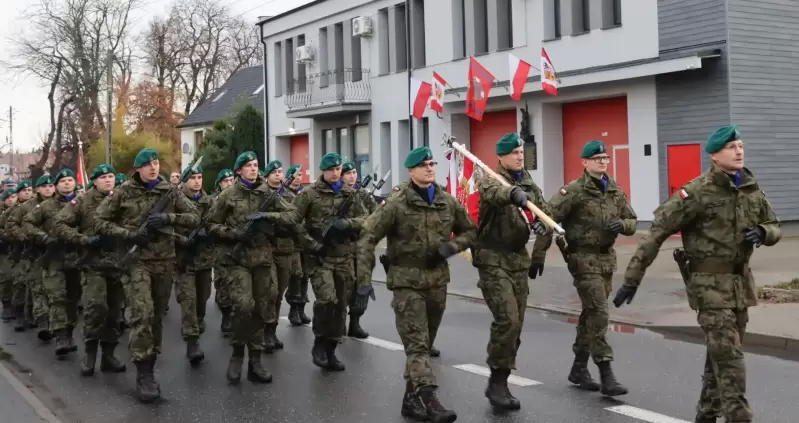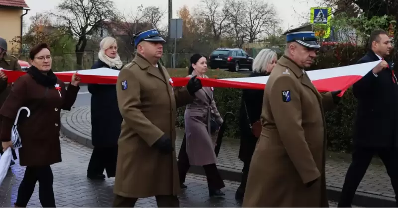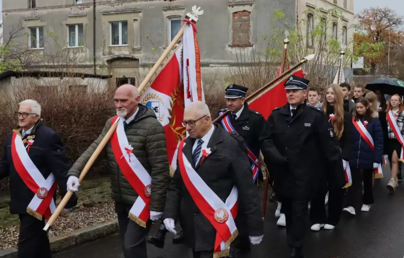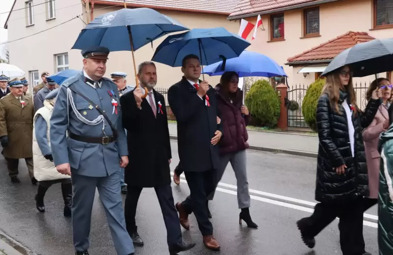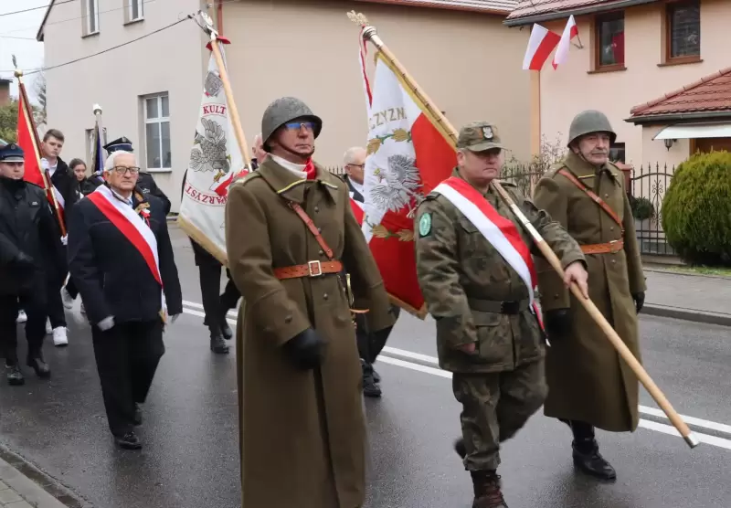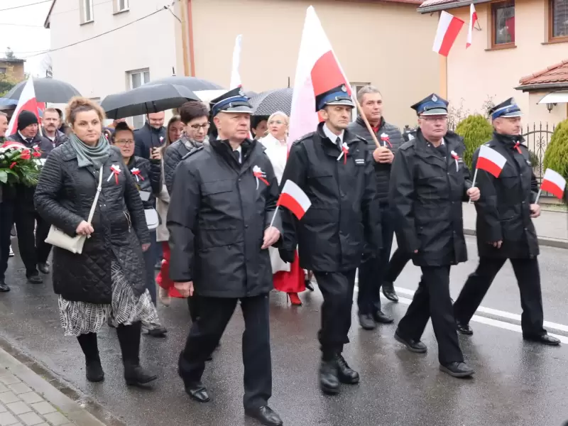 Po nabożeństwie uczestnicy wzięli udział w Pochodzie Niepodległościowym, prowadzonym przez Kompanię Honorową 10 Brygady Łączności oraz Orkiestrę Dętą OSP Domaniów pod batutą kapelmistrza Mirosława Marcisza.