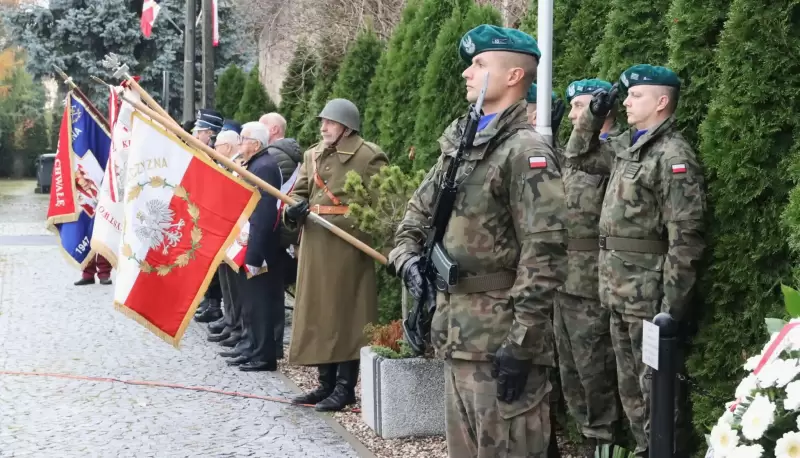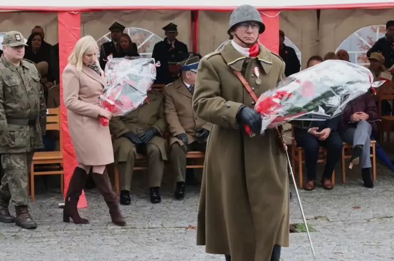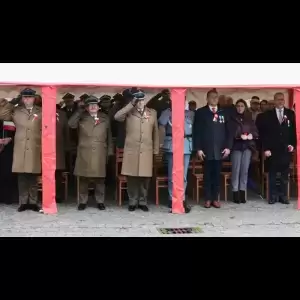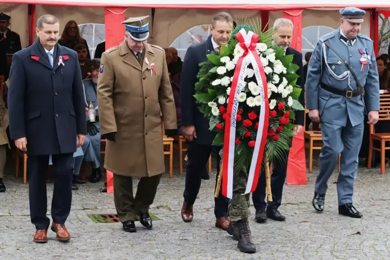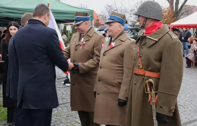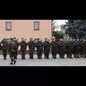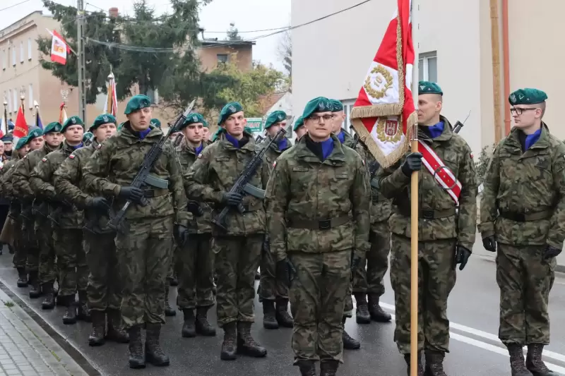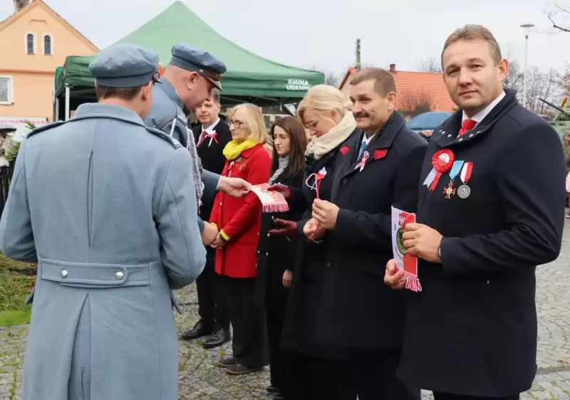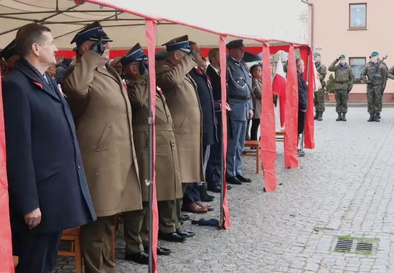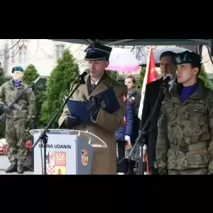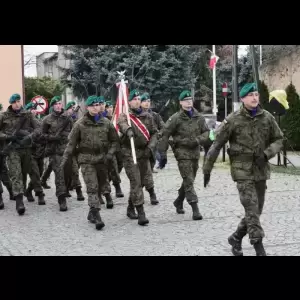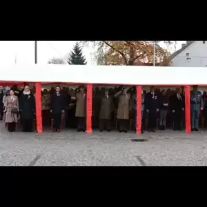 Następnie na Placu Obrońców Ojczyzny odbyła się główna część obchodów. W obecności mieszkańców, żołnierzy, druhów OSP, pocztów sztandarowych i zaproszonych gości uroczyście podniesiono flagę państwową na maszt i wspólnie odśpiewano hymn narodowy.
