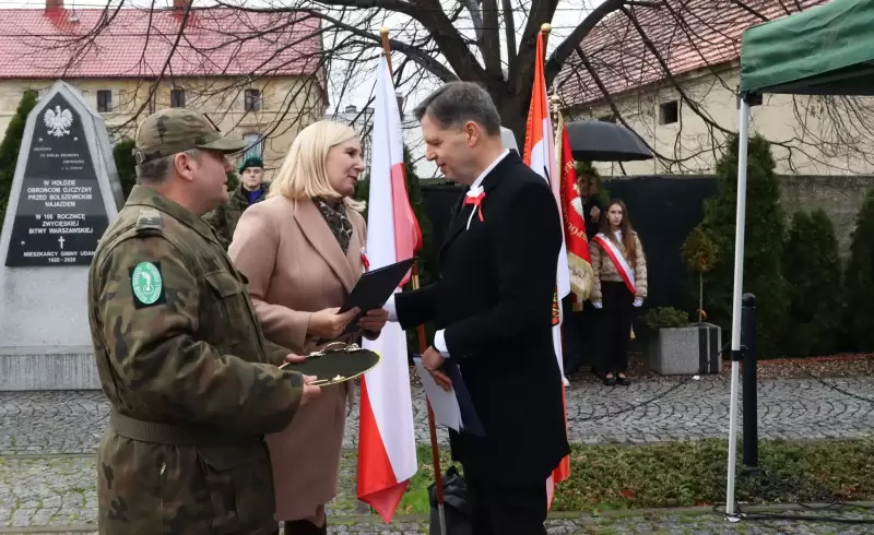Stowarzyszenie Grupa Rekonstrukcji Historycznej „Pancerni Strzegom”, na wniosek Związku Kombatantów RP i Byłych Więźniów Politycznych Oddział Strzegom, nadało medale pamiątkowe „Gloria Victis” posłowi na Sejm RP Pawłowi Hreniakowi, Wójtowi Wojciechowi Płaziukowi, a także przekazało dyplom z podziękowaniami Sekretarzowi Gminy Andrzejowi Bielskiemu. Uroczystego wręczenia dokonali Ewa Stodolak oraz Grzegorz Szerszeń.