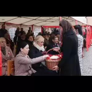 W trakcie uroczystości na placu, dla uczestników, rozdano tradycyjne rogale marcińskie.