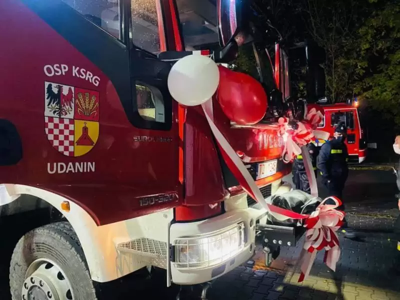 30 października, w godzinach wieczornych, strażacy z Udanina, w obecności kolegów z zaprzyjaźnionych jednostek Ochotniczych Straży Pożarnych, przywitali nowy samochód ratowniczo-gaśniczy warty 768.750,00 zł.