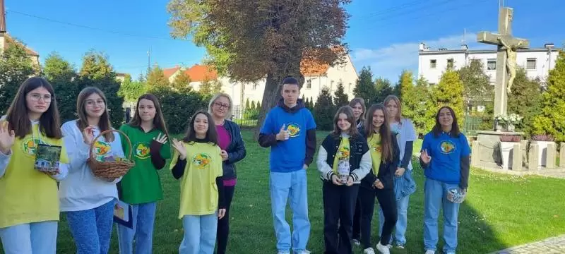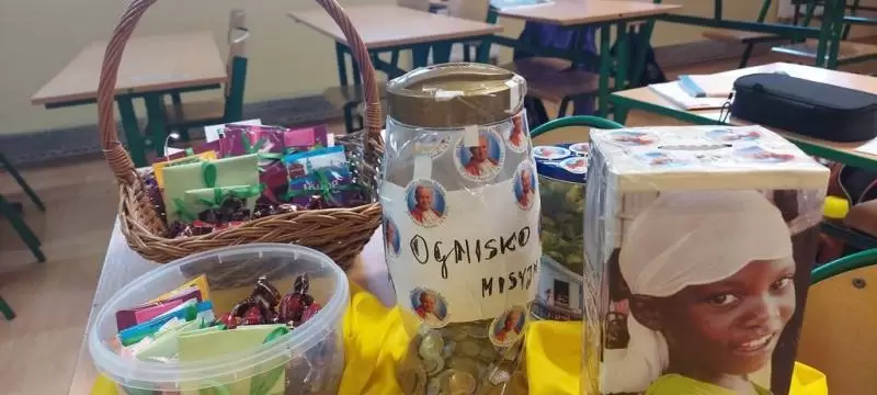 Dzieci należące do ogniska misyjnego w parafii pw. św. Jana Chrzciciela w Piekarach pod opieką pani katechetki z okazji Niedzieli Misyjnej przygotowały akcję „Cukierek i herbatka misyjna”.
