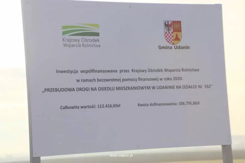 Odbioru zadania pod nazwą "Przebudowa drogi na osiedlu mieszkaniowym w Udaninie dz. nr 352" dokonali przedstawiciele Krajowego Ośrodka Wsparcia Rolnictwa OT we Wrocławiu, gminy Udanin, wykonawcy i inspektor nadzoru.