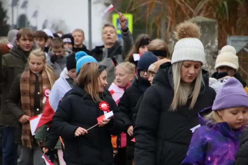 Uroczystość rozpoczęła się od wspólnego odśpiewania hymnu Polski. Następnie wszyscy z entuzjazmem wzięli udział w Wesołym Marszu Niepodległości.