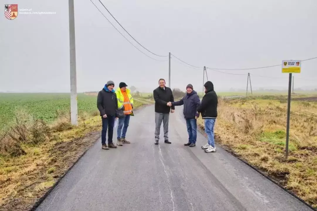 Prace związane z remontem drogi Udanin - Dziwigórz zostały zakończone. 30.11.2022 r. wójt Gminy Udanin Wojciech Płaziuk wraz z radnym i sołtysem dokonali odbioru inwestycji.
