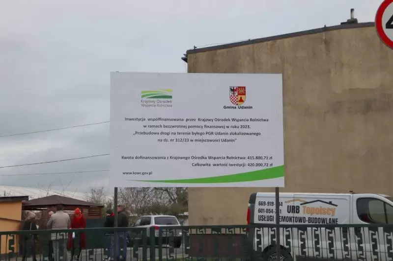 Na realizację zadania Gmina Udanin pozyskała bezzwrotną pomoc finansową z Krajowego Ośrodka Wsparcia Rolnictwa oddział terenowy we Wrocławiu w wysokości 412.000,00 zł.