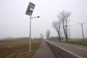 - W kilku miejscach, gdzie zostały zamontowane lampy, mieszkańcy czekali na oświetlenie przez okres 80 lat... - podkreśla wójt Gminy Udanin Wojciech Płaziuk, który dziś, w trakcie wizji w terenie, wraz z pracownikami Urzędu Gminy oceniał realizację budowy lamp hybrydowych i solarnych w ramach zadania „Podniesienie bezpieczeństwa drogowego na terenie Gminy Udanin", wspartego znacznymi środkami z dotacji celowej z budżetu Województwa Dolnośląskiego.