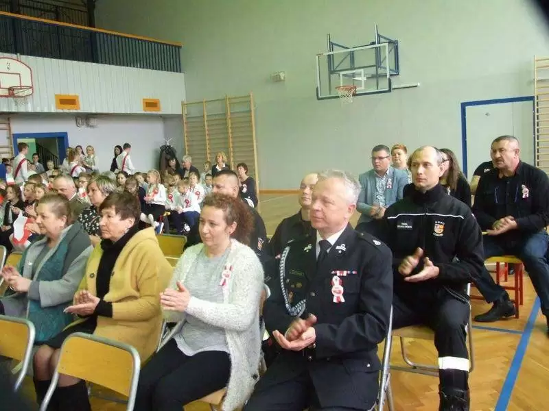 Na początku głos zabrała dyrektor Bożena Basa, następnie wójt gminy Udanin Wojciech Płaziuk oraz wicestarosta powiatu średzkiego Sebastian Burdzy. Uczniowie szkoły i wokalista Marcin Malinowski na ten dzień przygotowali piękną lekcję historii wyrażającą się strofach wierszy i patriotycznych piosenkach. „Wolność…to lot gołębi, nad dachami… To orzeł szybujący, pod chmurami… To cenna krew, naszych dziadów i ojców zew… To krzyż w lesie, pośród szumiących drzew…” – recytowały dzieci. Były również wspomnienia przywołujące w pamięci kombatantów, którzy przez wiele lat odwiedzali szkołę i wspólnie z dziećmi upamiętniali zdobycie wolności przez nasz kraj. Zawsze ze łzami w oczach dziękowali za ten wspólny czas. Dziś już nie było nikogo. Odeszli na wieczną wartę. Wszystkich uczczono minutą ciszy.