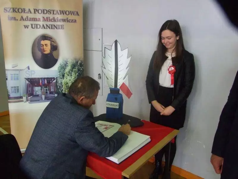 Dyrekcja oraz społeczność szkolna serdecznie dziękują wszystkim, którzy przybyli na uroczystość i zechcieli razem z dziećmi tworzyć współczesną historię, w której nigdy nie powinno zabraknąć miejsca i pamięci o polskich patriotach walczących o wolność naszego kraju. Dziękują w szczególności przybyłym gościom: reprezentantom powiatu średzkiego: wicestaroście Sebastianowi Burdzemu i Grzegorzowi Pierzchalskiemu, wójtowi gminy Udanin Wojciechowi Płaziukowi, ks. Markowi Jodko, radnym powiatowym i gminnym, przedstawicielowi 10 Wrocławskiego Pułku Dowodzenia Tomaszowi Jurkowi, Radzie Rodziców, przedstawicielom bibliotek gminnych, Alfredowi Kielochowi, Marcinowi Malinowskiemu, druhom z OSP Udanin, OSP Jarosław i policji w Środzie Śląskiej za zapewnienie bezpiecznego marszu, mieszkańcom Udanina za przybycie i wspólne świętowanie oraz Monice Cieślickiej, nauczycielom i pracownikom szkoły za przygotowanie tego, tak ważnego dla społeczności szkolnej i lokalnej święta.