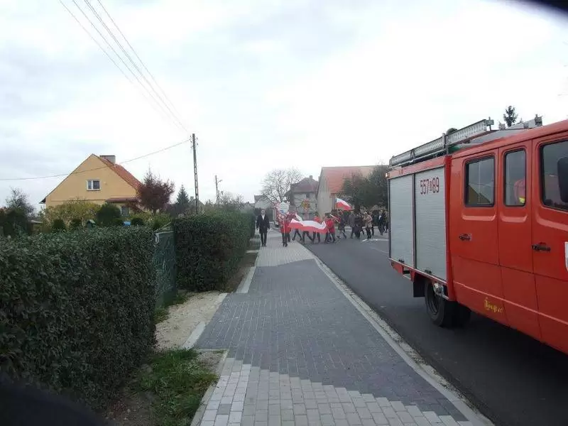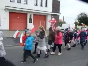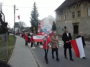 Po części artystycznej nastąpiło złożenie przez delegację Urzędu Gminy i Szkoły Podstawowej kwiatów pod pomnikiem poległych w obronie ojczyzny i patriotyczny marsz „biało – czerwony” ulicami Udanina. Przy dźwiękach żołnierskich piosenek, niosąc narodowe symbole, dzieci radośnie maszerowały, świętując Niepodległość.
