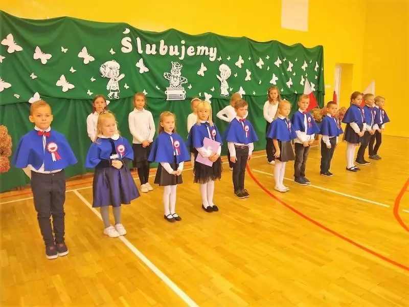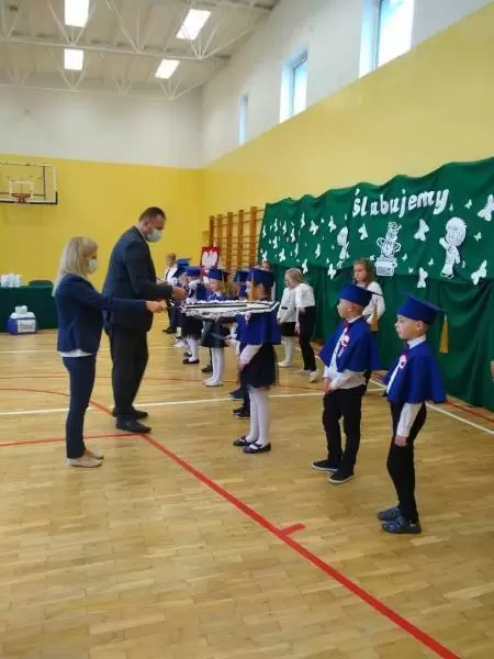 Ślubowanie ze względu na sytuację epidemiologiczną, wyglądało nieco inaczej niż zwykle. Dzieciom nie mogli niestety towarzyszyć uczniowie klas starszych. Nie zmienia to jednak faktu, iż dzień 23 października był dla pierwszoklasistów dniem niezwykłym i bardzo podniosłym.
