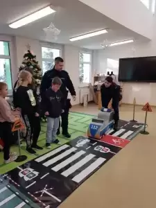 Mundurowi omówili zasady obowiązujące przy przechodzeniu przez przejazdy kolejowe oraz na drodze dla rowerów. Aby łatwiej było młodzieży zrozumieć przekazywane im informacje, policjanci korzystali z pozyskanych w ramach programu materiałów edukacyjnych takich, jak mata z przejściem dla pieszych i torami kolejowymi, znaki drogowe oraz sygnalizator świetlny. Dodatkowymi atrybutami były materiały profilaktyczne przygotowane osobiście przez policjantów z Posterunku Policji w Udaninie, dzięki którym nie jeden uczeń zapamięta, aby przechodzić po pasach "na zielonym" świetle i pozostać na chodniku, kiedy sygnalizator wskazuje kolor czerwony.