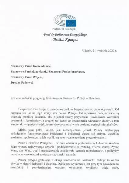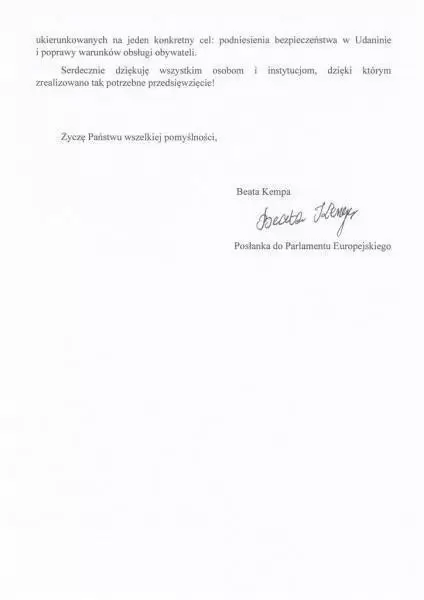 W uroczystości uczestniczyli również: komendant powiatowy policji w Środzie Śląskiej podinsp. Dariusz Smoliński, dyrektor biura poselskiego marszałka sejmu Elżbiety Witek - Aneta Trela, asystent posła do parlamentu europejskiego Beaty Kempy - Krzysztof Tarnacki, starosta powiatu średzkiego Krzysztof Szałankiewicz, radni rady gminy Udanin oraz mieszkańcy gminy.
