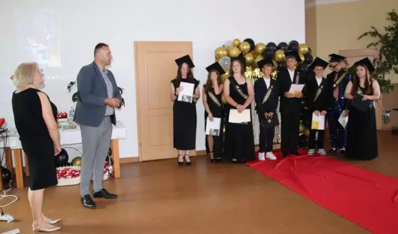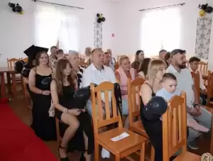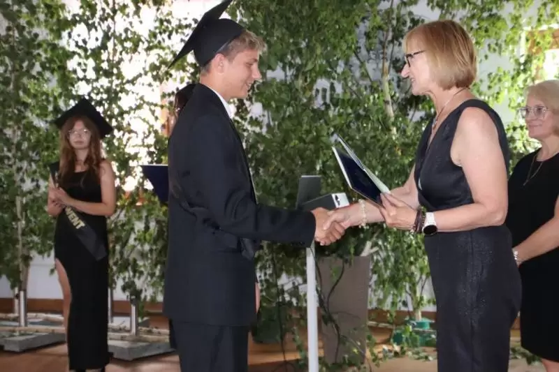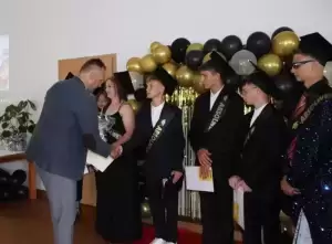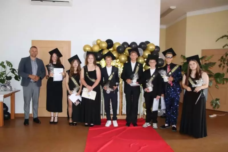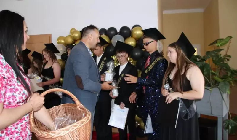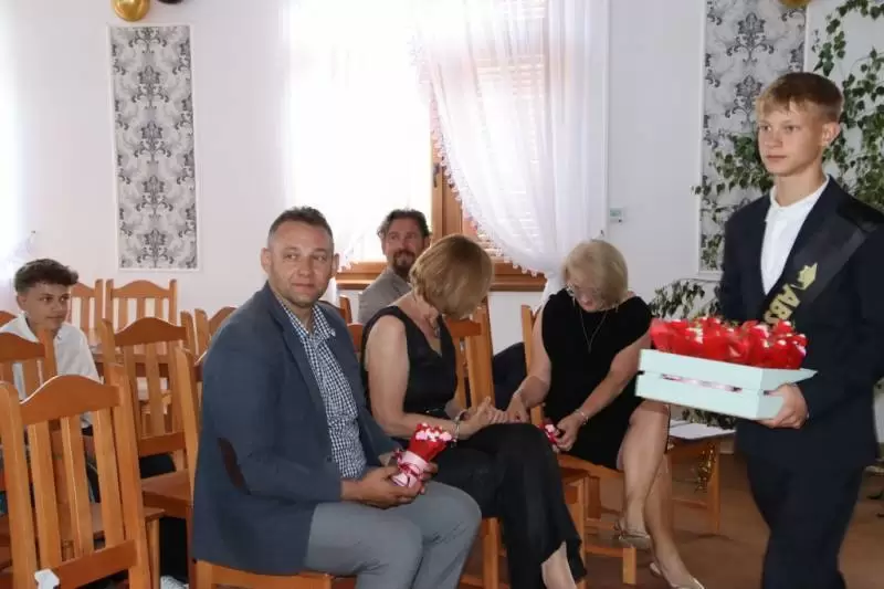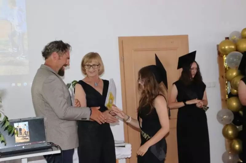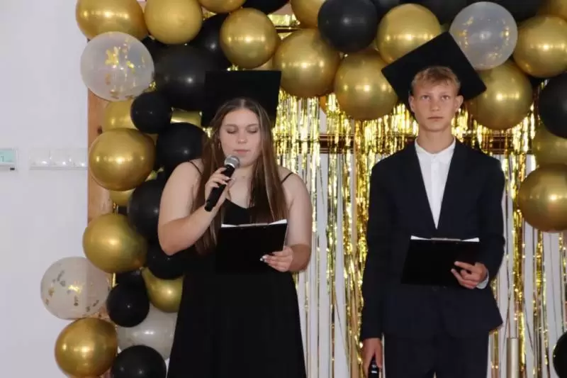 Uroczystość rozpoczęła się od przedstawienia sylwetek uczniów, co w piękny sposób zrobiła wychowawczyni klasy Lucyna Filończyk. Dzięki temu mogliśmy bliżej poznać każdego z absolwentów, nie tylko przez pryzmat osiągnięć, ale także ich pasji, cech charakteru i wspólnych chwil spędzonych w murach szkoły.
