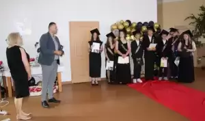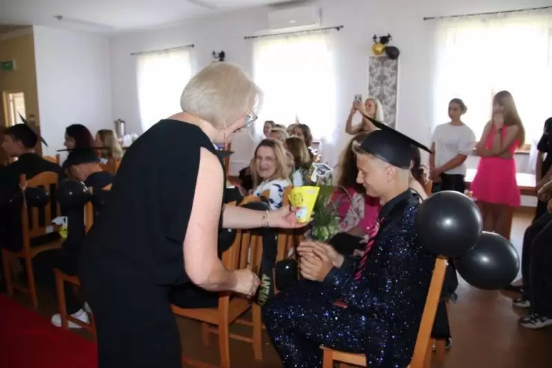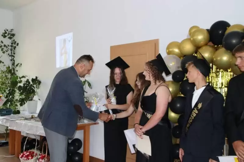 Na zakończenie głos zabrała również Dyrektor Szkoły Dorota Byra, która pogratulowała uczniom ukończenia ważnego etapu edukacji oraz życzyła im odwagi i wiary w siebie na kolejnych ścieżkach życia akcentując, że drzwi szkoły są dla uczniów zawsze otwarte.