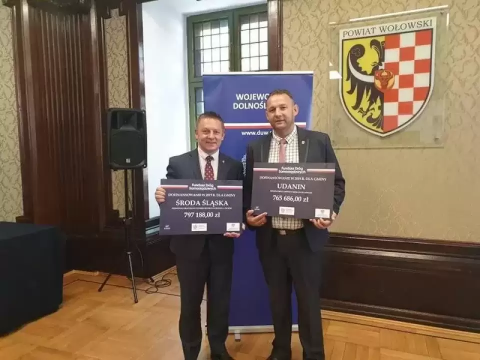 Wójt Gminy Udanin Wojciech Płaziuk odebrał dziś promesę z rąk Wojewody Dolnośląskiego Pawła Hreniaka na realizację inwestycji drogowych w ramach Funduszu Dróg Samorządowych.