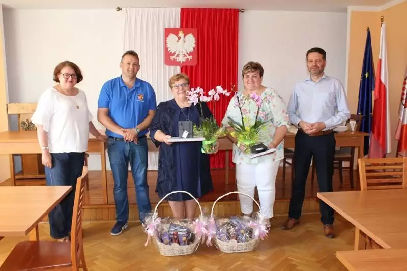 Oczywiście nie kryły wzruszenia opowiadając o swoim życiu i dokonaniach jakie wpłynęły znacząco na rozwój gminy. Koledzy i koleżanki z pracy podarowali liczne prezenty w dowód wdzięczności za wspólne lata pracy, a wójt gminy Udanin Wojciech Płaziuk wraz z sekretarzem Andrzejem Bielskim wręczyli Paniom kosze upominkowe.
