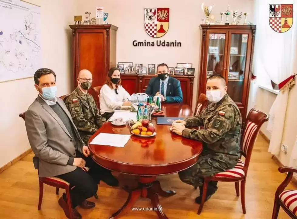 Wójt gminy Udanin Wojciech Płaziuk spotkał się dziś z przedstawicielami 10. Wrocławskiego Pułku Dowodzenia: dowódcą pułku płk Dariuszem Dejneką oraz oficerem prasowym por Arkadiuszem Paciejewskim.