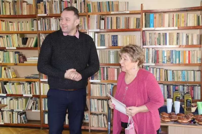Następnie Wójt z okazji dzisiejszego Tłustego Czwartku poczęstował naszych lokalnych artystów pysznym pączkiem, a każdy uczestnik zaprezentował wiersz zgłoszony w konkursie.