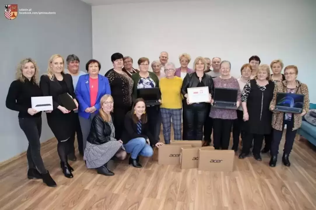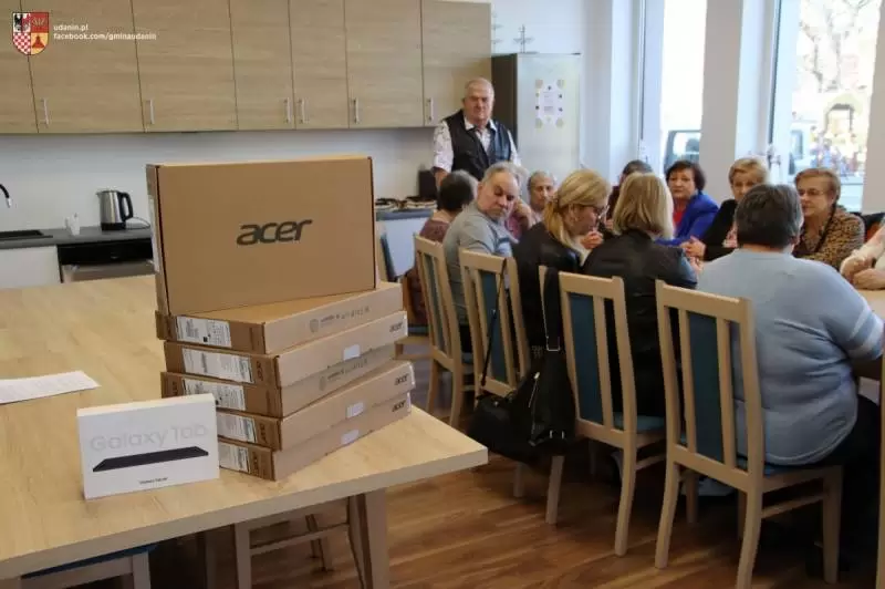 W środę 15 lutego Wójt Gminy Udanin Wojciech Płaziuk wraz z Ministrem Cyfryzacji Januszem Cieszyńskim przekazali 6 nowych laptopów oraz 1 tablet na ręce członków Klubu Seniora w Konarach.