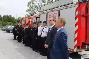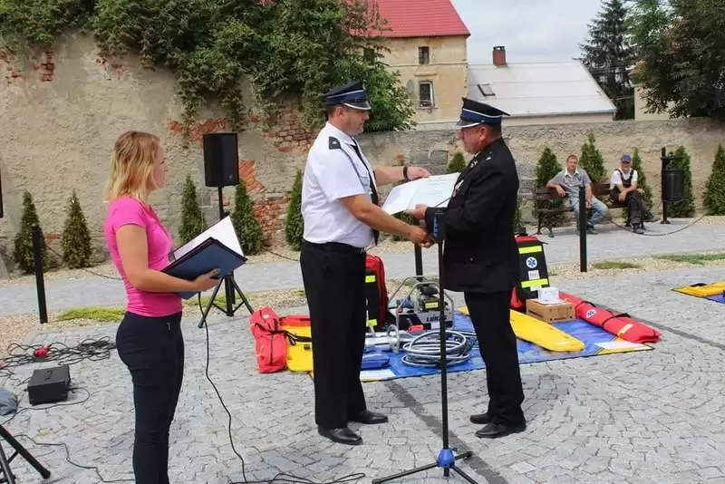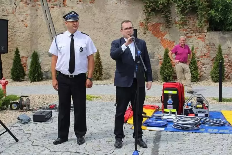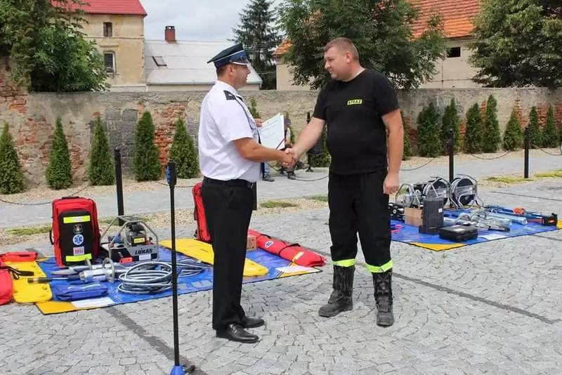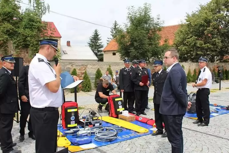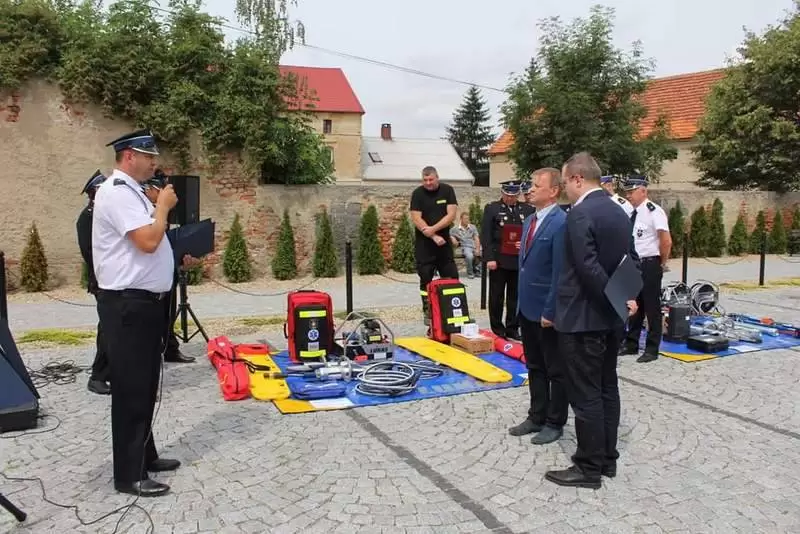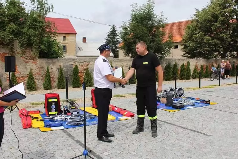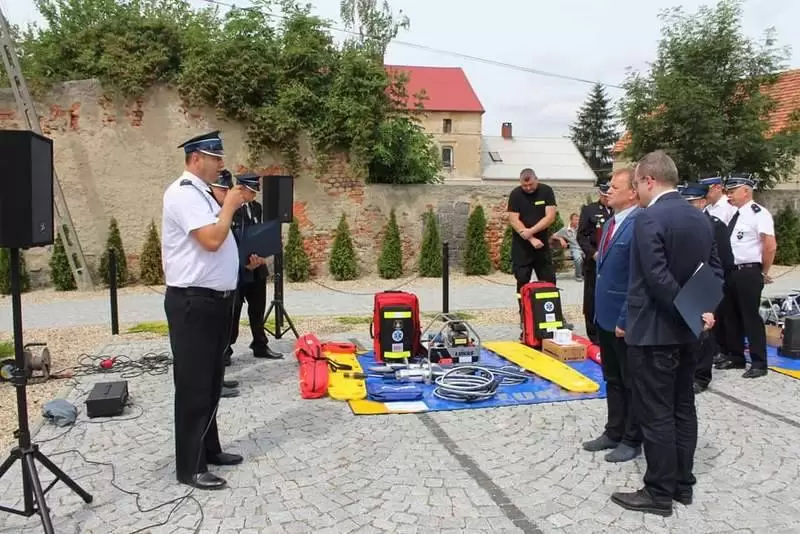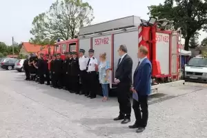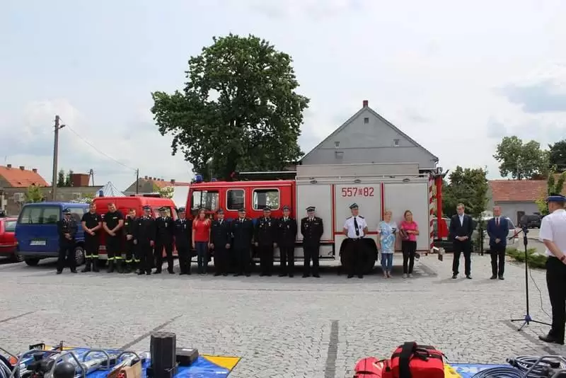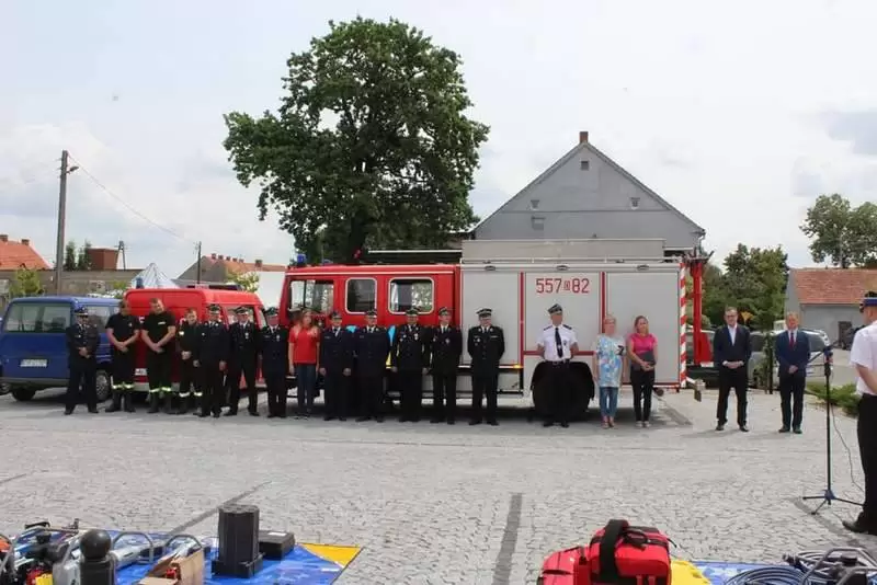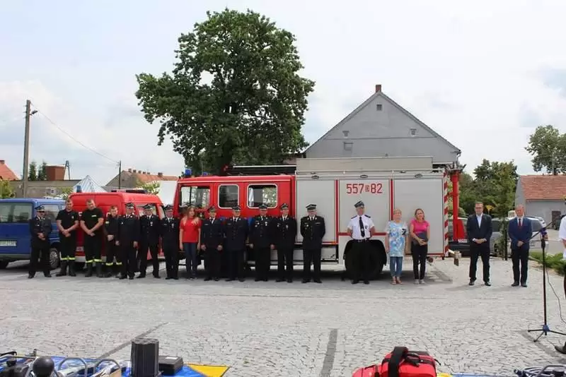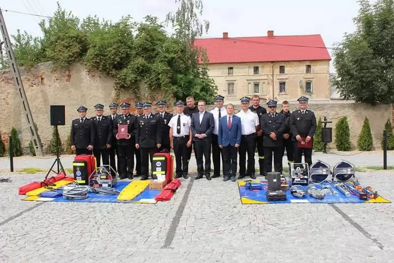Sprzęt otrzymały jednostki OSP: Lusina, Ujazd Dolny oraz Pichorowice. Podczas uroczystego przekazania obecni byli: Poseł na Sejm RP Pan Przemysław Czarnecki, przedstawiciel biura Posłanki do Parlamentu Europejskiego Pani Beaty Kempy – Pan Krzysztof Tarnacki oraz Zastępca Komendanta Powiatowego Państwowej Straży Pożarnej Pan Tomasz Imielski.