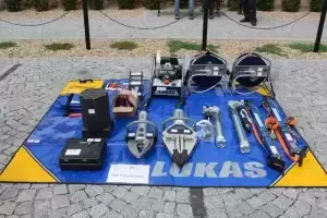 Średni zestaw ratowniczy 1 szt. dla OSP Lusina (agregat hydrauliczny P630SG TURBO, nożyce hydrauliczne S 377, rozpieracz ramieniowy SP 555, wąż przedłużający – 2 szt., piła ręczna do cięcia szyb klejonych WSC -1 – 1 szt., wybijak do szyb hartowanych – 1 szt., nóż do pasów bezpieczeństwa – 1 szt., mata narzędziowa – 1 szt.);