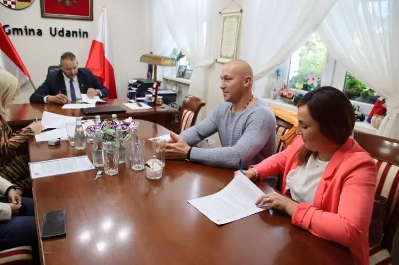 Umowę podpisali: Prezes Zarządu Justyna Bergier, Wójt Gminy Udanin Wojciech Płaziuk, w obecności Skarbnika Bożeny Trawińskiej oraz Kierownika Referatu Rolnictwa, Ochrony Środowiska, Gospodarki Przestrzennej i Infrastruktury Technicznej Aleksandry Zastockiej.