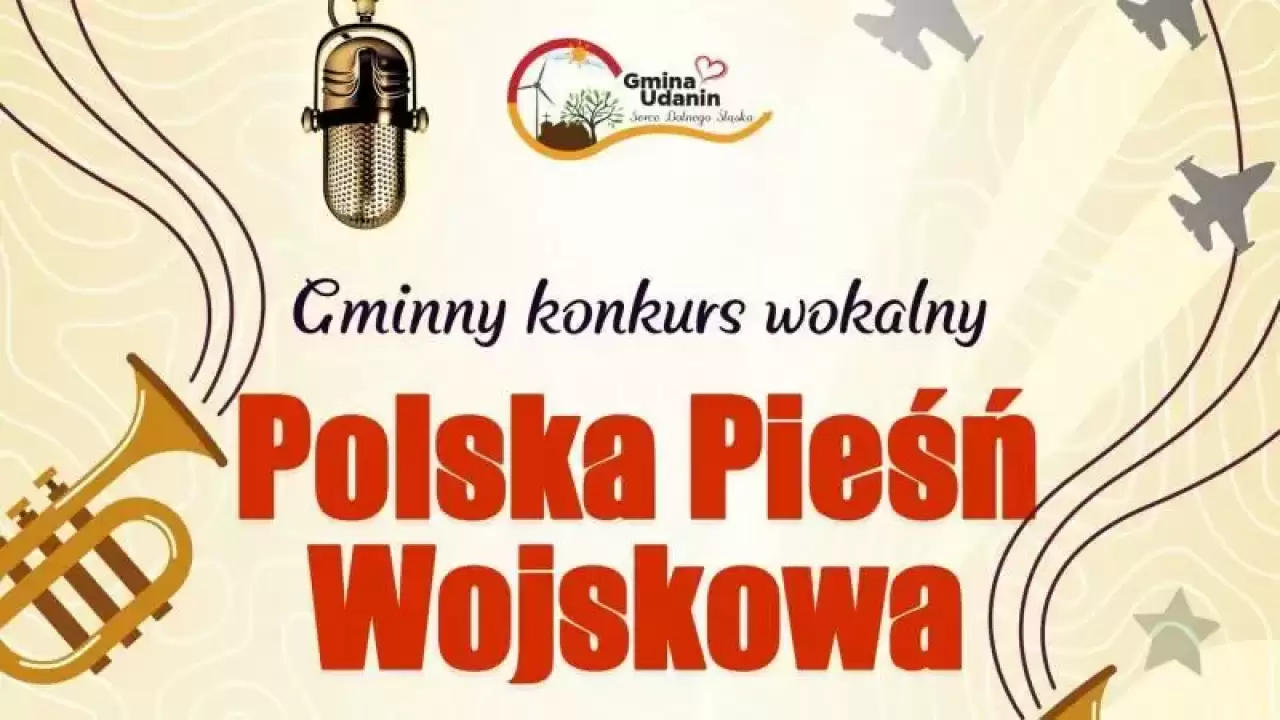 Gmina Udanin serdecznie zaprasza do udziału w Gminnym Konkursie Wokalnym "Polska Pieśń Wojskowa". Głównym celem konkursu jest promowanie pieśni żołnierskich i wojskowych wśród dzieci, młodzieży i dorosłych oraz kształtowanie postaw patriotycznych.