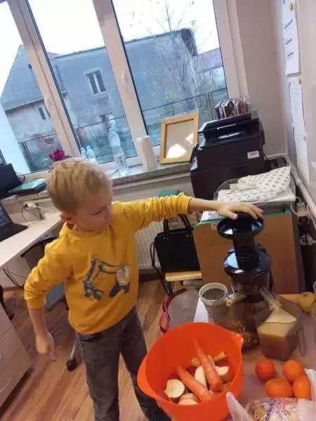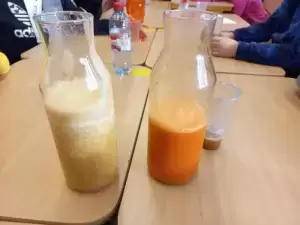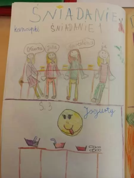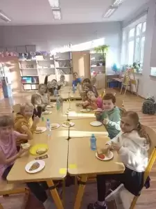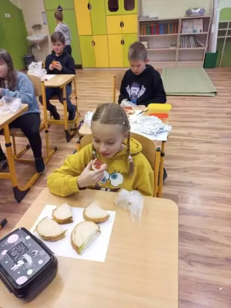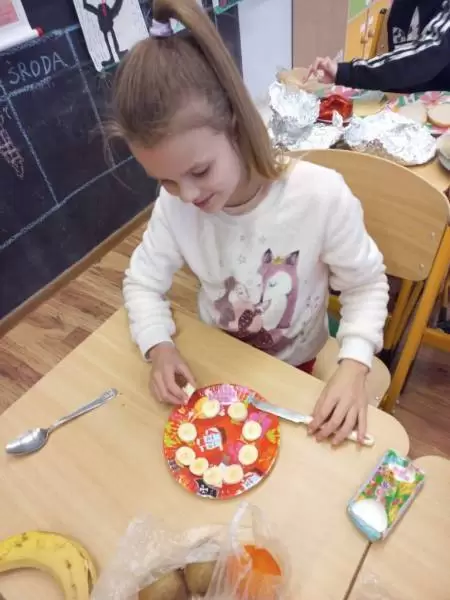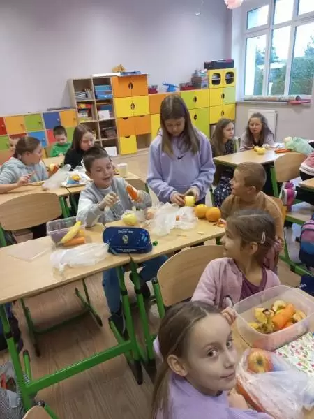 Nauka przez kulinarne działanie bardzo dzieciom przypadła do gustu. Maluchy z wielkim przejęciem kroiły, smarowały, układały oraz wyciskały owoce i warzywa, poznając w ten sposób zasady zdrowego żywienia. Mali kucharze oczywiście nie zapomnieli o starszych koleżankach i kolegach, ochoczo dzieląc się z nimi zdrowymi smakołykami. Koordynatorem projektu w szkole jest pani Alicja Filończyk.
