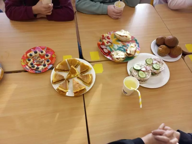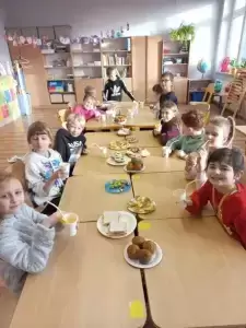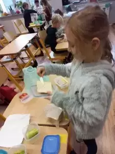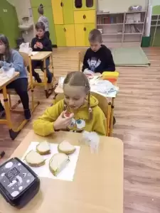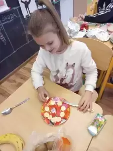 Podczas pięciu listopadowych poniedziałków dzieci przygotowywały wspólne, zdrowe posiłki. Każdy dzień miał kolejno swoje przewodnie hasło: Panini, tosty, koreczki-to są wszystko kanapeczki!, Owocowe deserki na wspaniałe humorki, czyli zdrowy owoc szybko znika w brzuszku dziewczynki i chłopczyka!, Laktozowy zawrót głowy - Owsianka? A fe... a może jednak nie?, Mamo, Babciu to jest szok! Zrobię sam bez cukru sok!, Co kto lubi-tym się chlubi, czyli śniadaniowa niespodzianka.