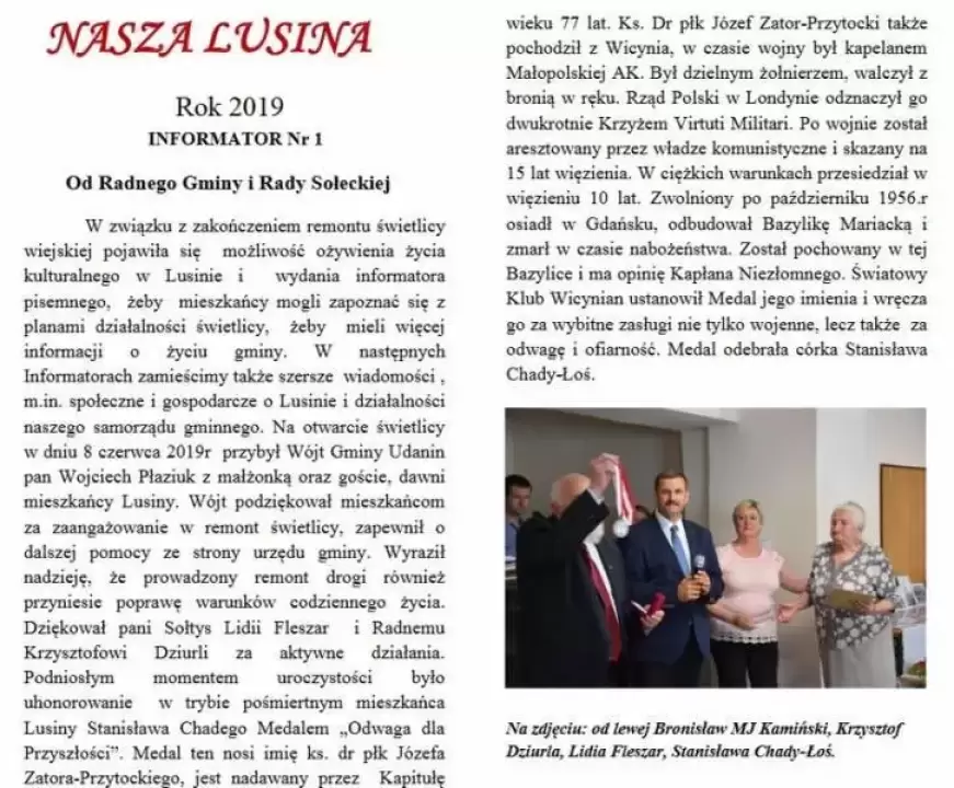 Dzięki gazecie mieszkańcy Lusiny mogą pozyskać więcej informacji o życiu gminy Udanin oraz o działaniach podejmowanych w swojej miejscowości.