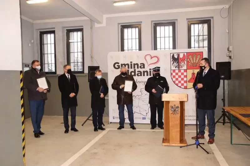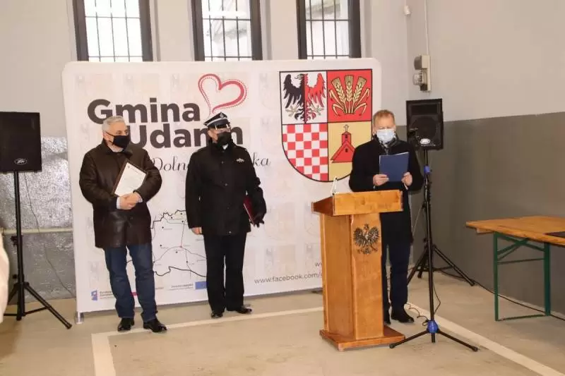 Dzięki wsparciu z Funduszu Sprawiedliwości strażacy OSP z gminy Udanin otrzymali specjalistyczny sprzęt pożarniczy. Podczas uroczystości wręczono gratulacje i przekazano sprzęt o łącznej wartości 302.657,33 zł, z czego dofinansowanie z Ministerstwa Sprawiedliwości wyniosło 293.298,56 zł, przy wkładzie własnym gminy Udanin w wysokości 9.358,77 zł.