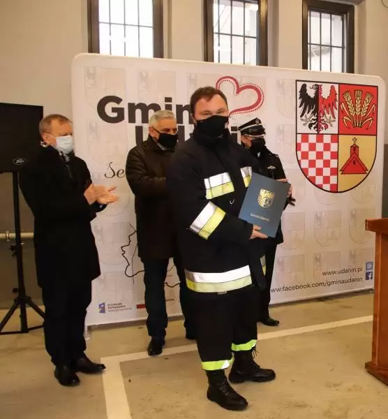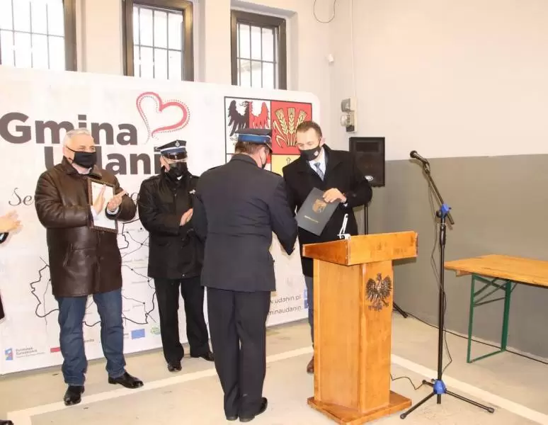W remizie Ochotniczej Straży Pożarnej w Udaninie odbyła się dziś uroczystość przekazania sprzętu i wyposażenia pożarniczego dla jednostek OSP z terenu gminy Udanin, zakupionego w ramach dwóch projektów: dotyczących doposażenia jednostek OSP z terenu Gminy w roku 2020 oraz doposażenia jednostki OSP Udanin w sprzęt ratownictwa technicznego współfinansowanych ze środków Ministerstwa Sprawiedliwości w ramach Funduszu Pomocy Pokrzywdzonym oraz Pomocy Postpenitencjarnej – Funduszu Sprawiedliwości.