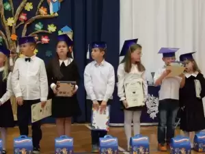 Podczas apelu minutą ciszy uczczono zmarłego, byłego dyrektora szkoły Janusza Kozaka. Uroczystość zakończyła się biesiadowaniem przy pysznym cieście, które przygotowali dla dzieci rodzice wraz z wychowawczynią.