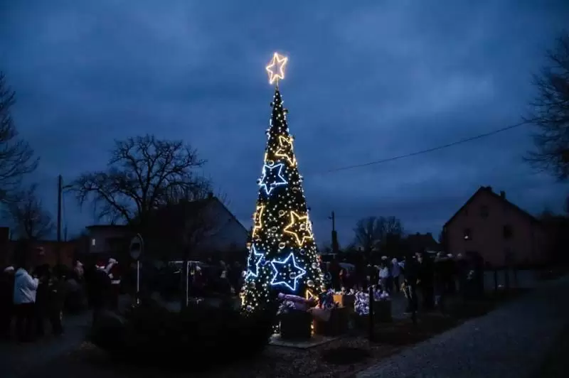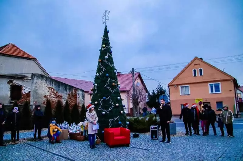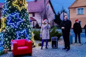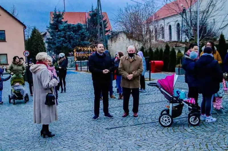 Gdy zabłysła świąteczna choinka na Plac Obrońców Ojczyzny w Udaninie zawitał długo wyczekiwany gość - Święty Mikołaj. Przywołany przez dzieci słowami "Mikołaju czekamy na Ciebie" zasiadł przy choince, by chwilę odpocząć.