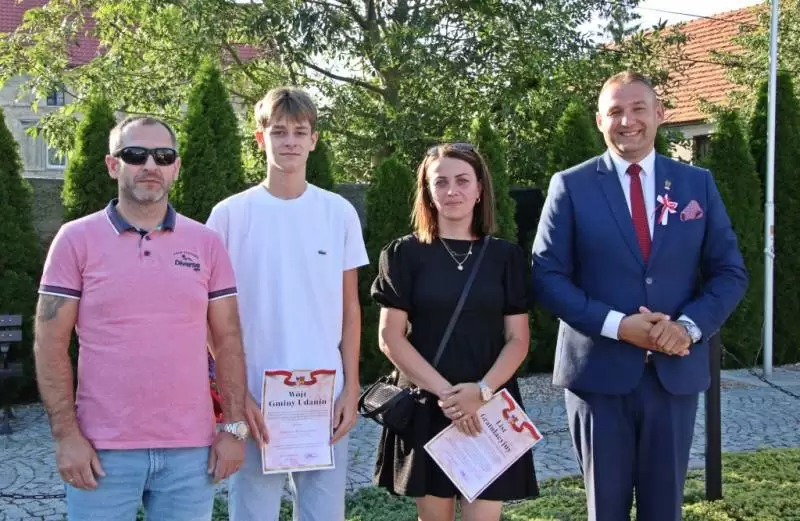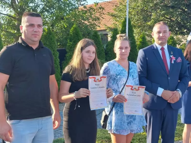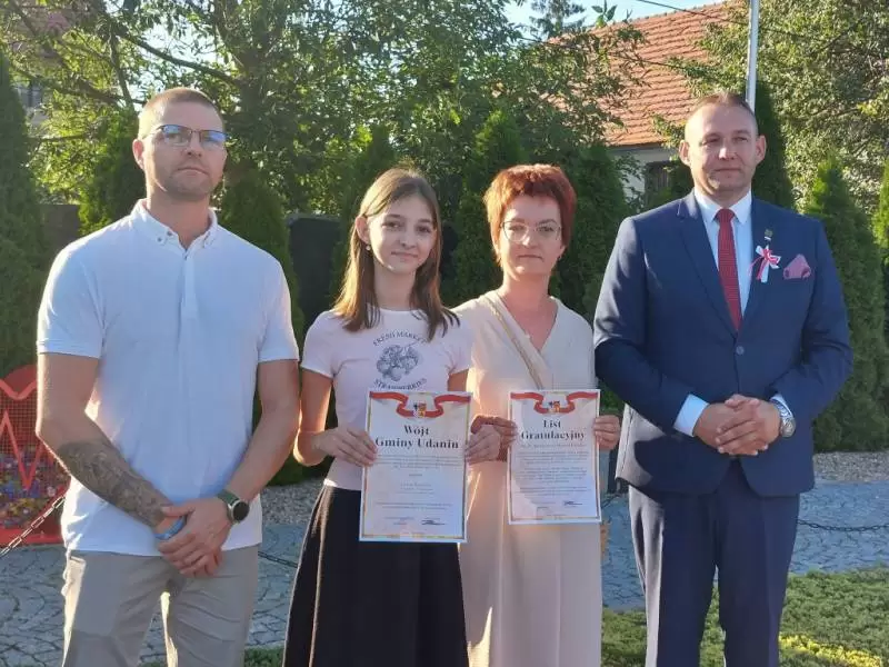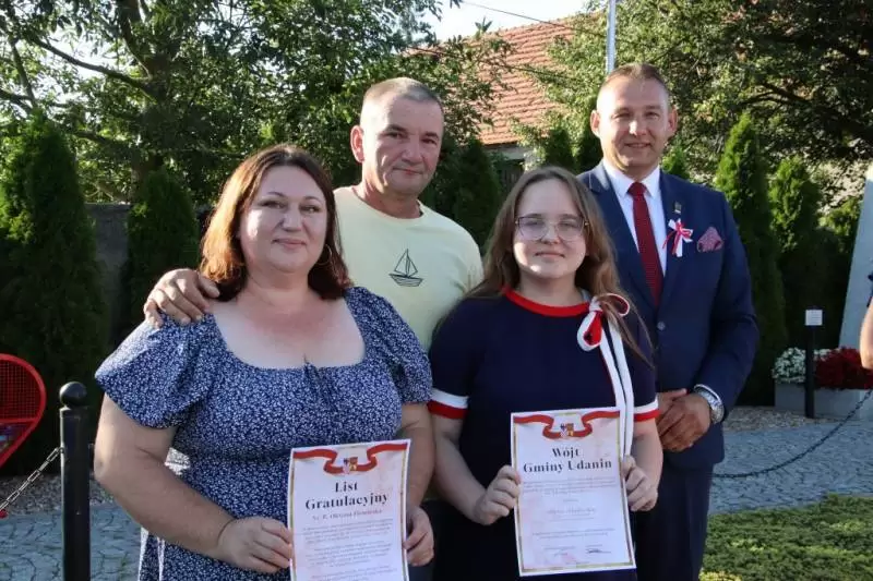 Niedzielne obchody wyjątkowe były również pod względem uhonorowania uczniów szkół podstawowych, którzy swoją ciężka pracą, determinacją i pasją osiągnęli znakomite wyniki w nauce i szczególne osiągniecia. Stypendia Wójta Gminy Udanin, na podstawie Uchwały nr LXIX .273.2023 Rady Gminy Udanin z dnia 30 maja 2023 r. w sprawie zasad i trybu przyznawania stypendiów za wyniki w nauce dla uczniów szkół podstawowych, są wyrazem uznania dla ich zaangażowania i wybitnych osiągnięć. Stypendia otrzymali: