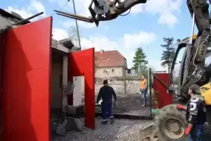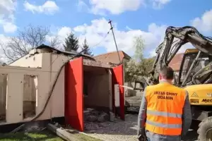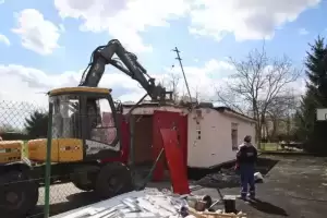 Wójt Gminy Udanin Wojciech Płaziuk odwiedził dziś Lusinę, gdzie rozpoczęto prace rozbiórkowe oraz przygotowawcze związane z budową nowej remizy dla jednostki OSP Lusina.