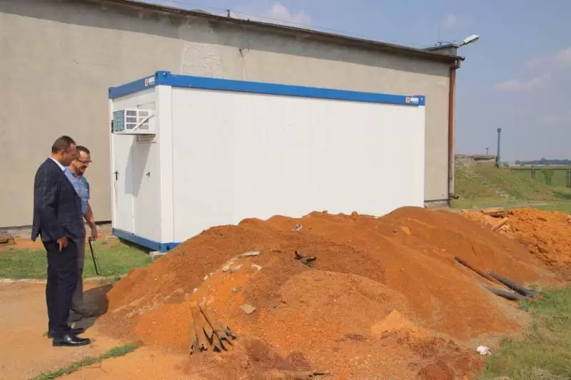 Dziś Wójt Wojciech Płaziuk odwiedził teren Stacji Uzdatniania Wody w Ujeździe Dolnym, gdzie rozpoczęto prace nad modernizacją układu technologicznego.
