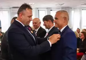 Uroczyste odznaczenia rozpoczęto od tytułu „Honorowy Obywatel Gminy Udanin”, którym odznaczono Posła na Sejm RP Pawła Hreniaka doceniając jego wkład i zaangażowanie w rozwój Gminy.