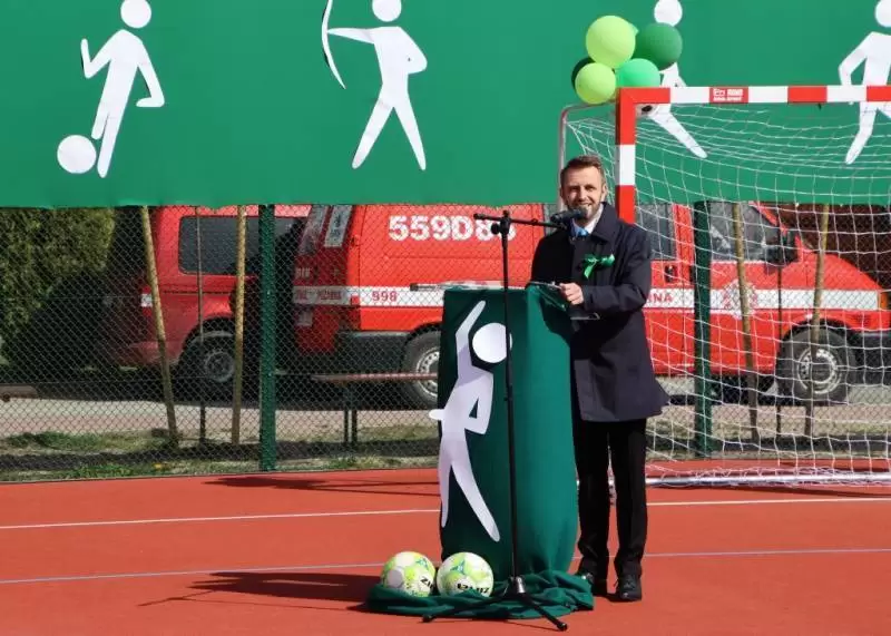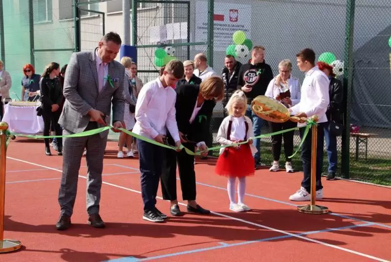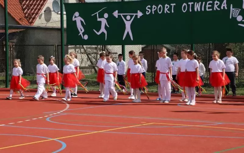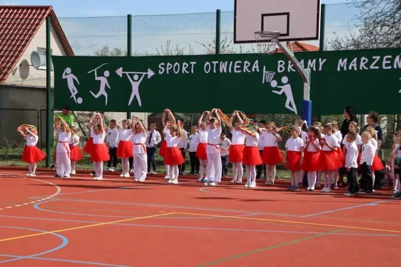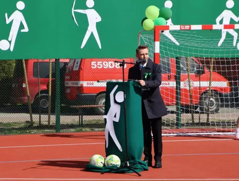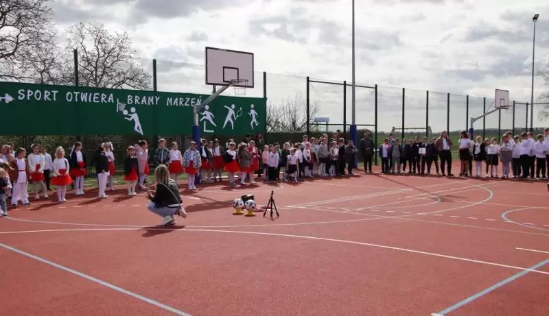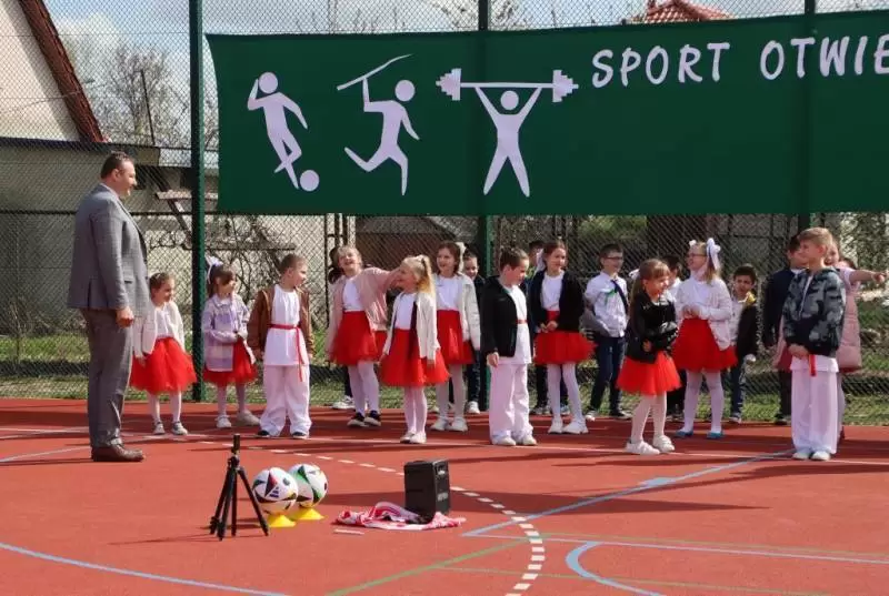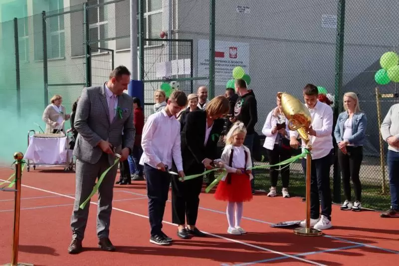 Podczas ceremonii otwarcia podkreślono rolę nowego obiektu sportowego, a także dokonano podsumowania inwestycji. Mówcy wspominali czasy sprzed trzydziestu lat, kiedy to na starym asfalcie wówczas ich rówieśnicy zdzierali kolana. Teraz boisko prezentuje się nowocześnie i spełnia wszystkie potrzeby uczniów i mieszkańców gminy.
