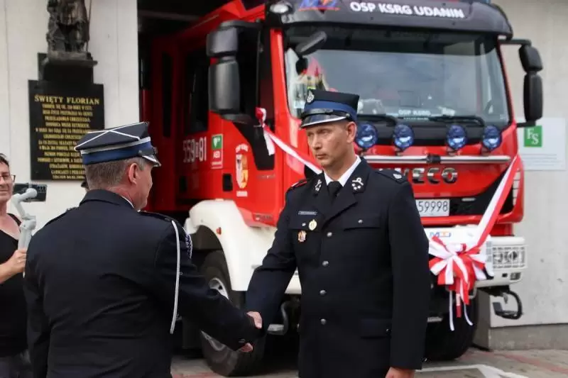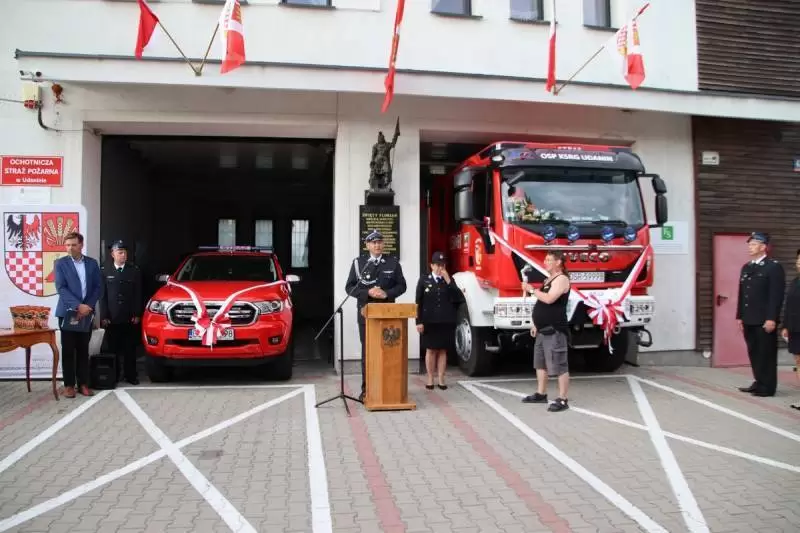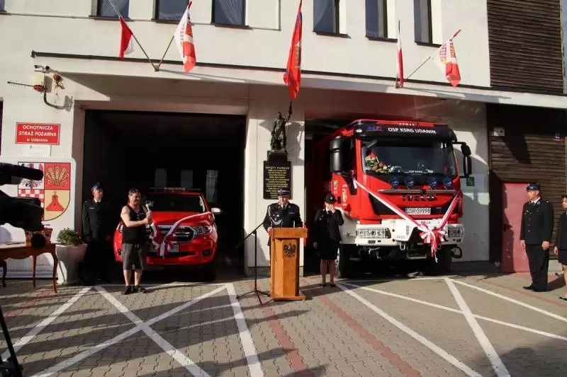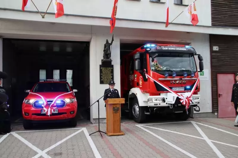 W piątek 25 sierpnia 2023 r. przed remizą strażacką w Udaninie odbyło się uroczyste przekazanie przez Wójta Gminy Udanin samochodu techniczno-operacyjno-rozpoznawczego Ford Ranger jednostce OSP KSRG Udanin oraz symboliczne wprowadzenie do podziału bojowego średniego samochodu ratowniczo-gaśniczego Iveco Eurocargo.