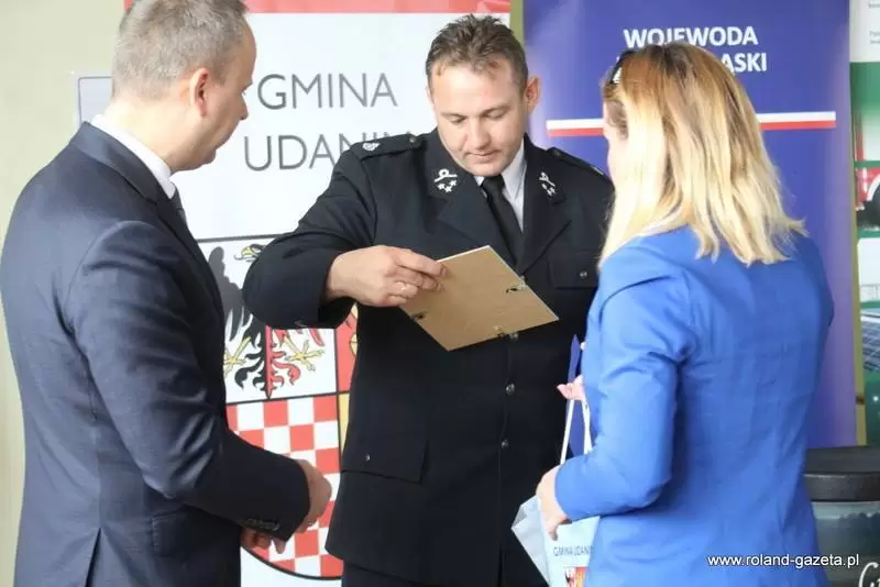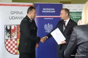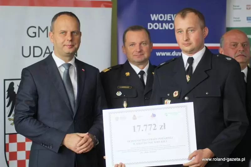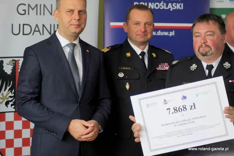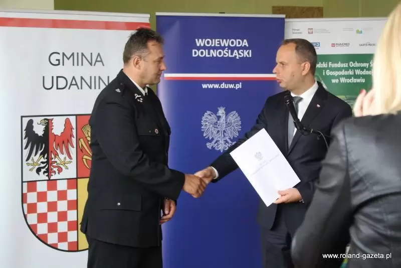 W uroczystości udział wzięli m.in. Wojewoda Dolnośląski Paweł Hreniak, Prezes Wojewódzkiego Funduszu Ochrony Środowiska i Gospodarki Wodnej we Wrocławiu Łukasz Kasztelowicz, Dolnośląski Komendant Wojewódzki Straży Pożarnej Adam Konieczny i Wójt Gminy Udanin Wojciech Płaziuk.