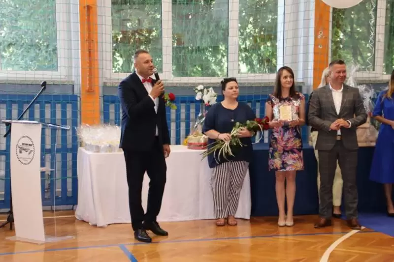 W tym wyjątkowym dniu pożegnano także nauczycieli i pracowników niepedagogicznych, którzy odchodzą na zasłużoną emeryturę, a są to: Wicedyrektor Małgorzata Rachwalska, Mirosława Babicka, Renata Podedworna, Alicja Filończyk oraz Halina Zawierucha. Dziękujemy za poświęcone lata i wspólne chwile, które na długo pozostaną w naszej pamięci.