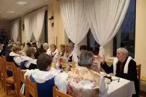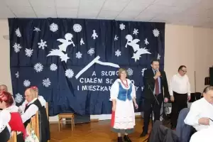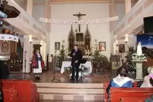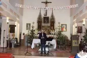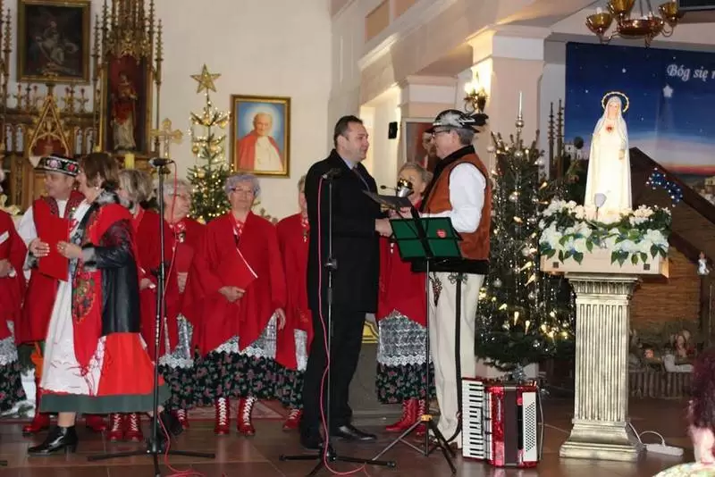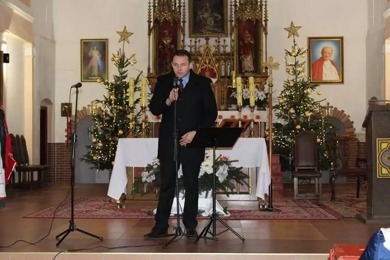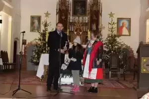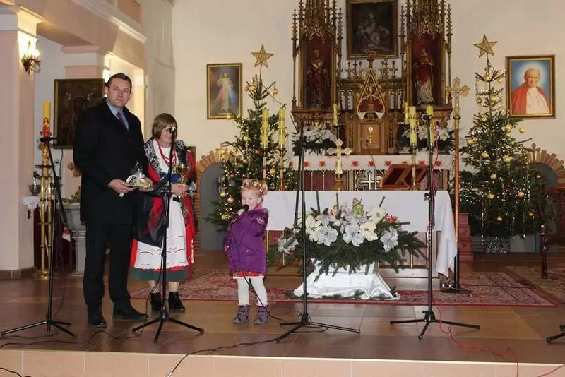 Pani prezes wyraziła także zadowolenie z faktu, że do Udanina przyjechało dużo barwnych zespołów z różnych stron Dolnego Śląska - witając wszystkich przybyłych mieszkańców gminy Udanin, w tym zaproszonych gości: wójta gminy Udanin Wojciecha Płaziuka, ksiądza Marka Jodko proboszcza parafii św. Jana Chrzciciela w Piekarach, który podczas mszy św. podziękował za kultywowanie tak pięknej idei przeżywania okresu Bożego Narodzenia, jaką jest Przegląd Kolęd i Pastorałek, radnych, sołtysów oraz prezesa LGD „Szlakiem Granitu” Andrzeja Suktę.