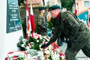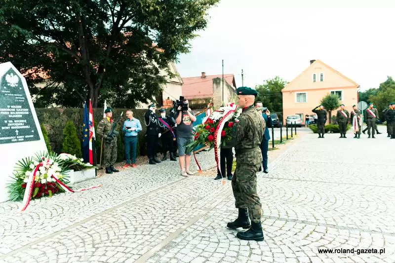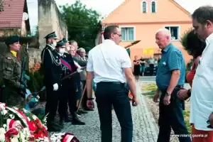 Po okolicznościowych przemówieniach nastąpił najważniejszy punkt uroczystości – odsłonięcie pomnika pamięci „Obrońcom Ojczyzny” oraz poświęcenie go przez ks. Biskupa Marka Mendyka. Został odczytany Apel Pamięci oraz oddana salwa honorowa kompanii wojskowej. Pod nowo odsłoniętym pomnikiem wieńce i wiązanki złożyli: przedstawiciele władz państwowych, rządu, parlamentu europejskiego, województwa dolnośląskiego, lokalnych, wojska, instytucji publicznych oraz państwowych.