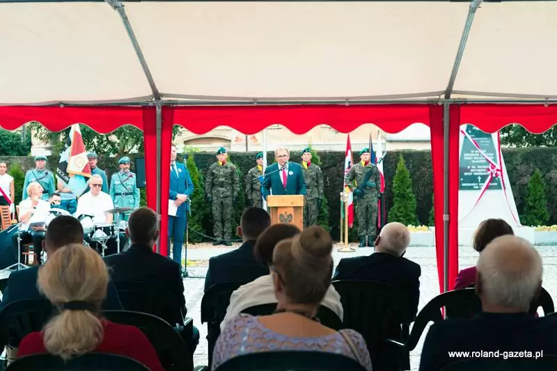 Podczas uroczystości przemówienie wygłosił wójt Gminy Udanin Wojciech Płaziuk „(…)To tu mam nadzieję przez kolejne lata będziemy się spotykać podczas uroczystości gminnych i świąt państwowych. Powołany komitet założycielski pod moim przewodnictwem może zameldować wykonanie zadania. Dlatego melduję wszystkim tu obecnym, że Pomnik jest przygotowany do uroczystego odsłonięcia.(…)”. Kolejno głos zabrali: Jarosław Obremski - Wojewoda Dolnośląski, Aneta Trela - dyrektor biura poselskiego Marszałka Sejmu Elżbiety Witek, Anna Zalewska – Poseł do Parlamentu Europejskiego, Paweł Hreniak – Poseł do Sejmu RP, Andrzej Jaroch – Przewodniczący Sejmiku Województwa Dolnośląskiego, Krzysztof Szałankiewicz – Starosta Powiatu Średzkiego oraz Bazyli Maliniak – były mieszkaniec gminy Udanin (m. Piekary), obecnie mieszkaniec Strzegomia.