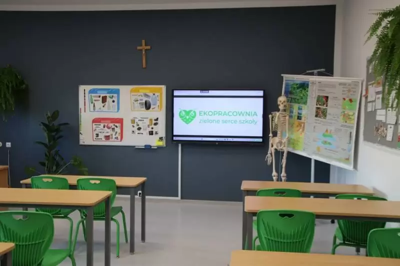 Ekopracownia nie tylko zdobi przestrzeń szkoły, ale także stanowi miejsce, gdzie uczniowie mogą zgłębiać tajniki przyrody i rozwijać swoją świadomość ekologiczną. Sala, w której znajduje się Ekopracownia, przeszła gruntowny remont, a następnie została wyposażona w nowoczesne urządzenia, sprzęt i materiały edukacyjne. Nowy monitor interaktywny, laptop, drukarka, nowoczesne meble, mikroskopy, zestawy modeli dotyczące energii odnawialnej - to tylko niektóre z nowości, które uczynią zajęcia bardziej atrakcyjnymi.