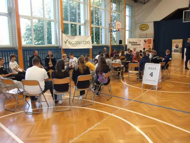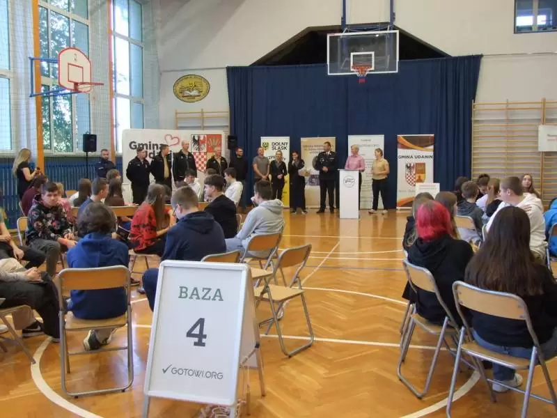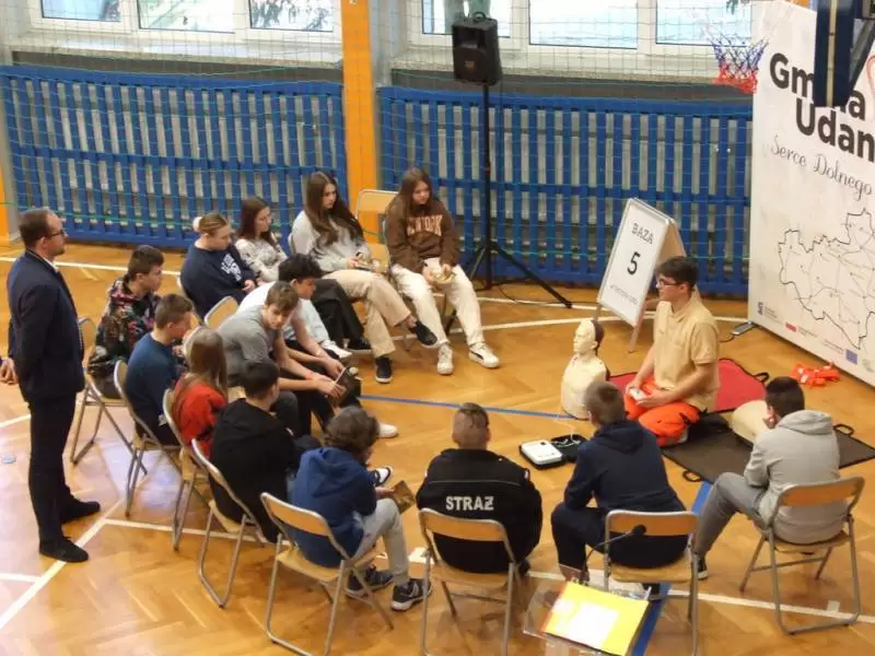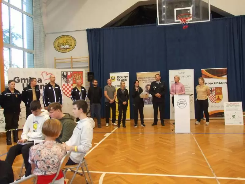 W szkoleniu oprócz uczniów na zaproszenie dyrektor Joanny Dumicz, udział wzięli również goście: wójt gminy Udanin Wojciech Płaziuk, dyrektor Wydziału Bezpieczeństwa UM Agnieszka Sokołowska i współpracownicy, wicedyrektor Małgorzata Rachwalska, nauczyciele, przedstawiciele jednostek odpowiedzialnych za bezpieczeństwo w gminie Udanin: policja, strażacy z OSP Udanin oraz urzędnicy gminy. Dzieciom zajęcia bardzo się podobały, w pięciu grupach baz warsztatowych poznawały różne zagadnienia i umiejętności, dla których wspólnym mianownikiem było budowanie odporności na zagrożenia.