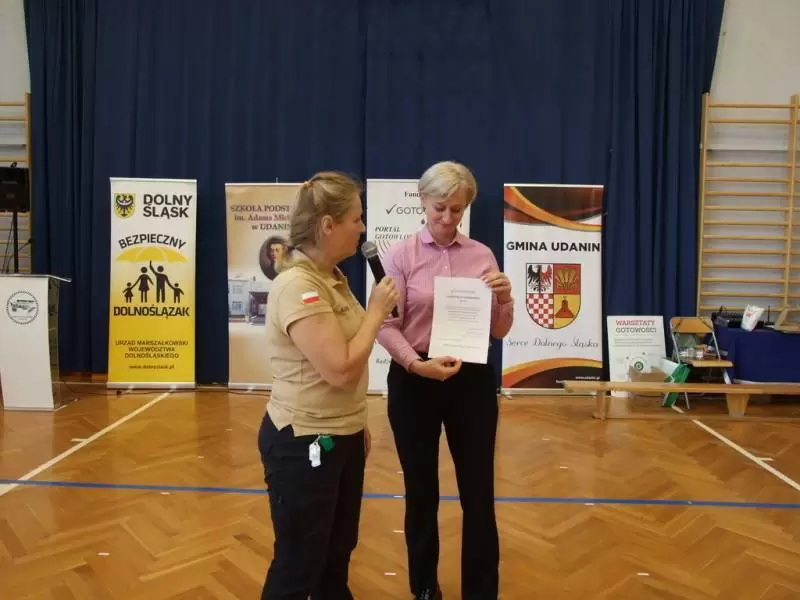 Szkoła Podstawowa w Udaninie w ubiegłym roku szkolnym została wyróżniona za napisanie i zrealizowanie projektu „Akcja nie byle jaka, dotyczy bezpiecznego Dolnoślązaka”, w ramach programu ”Bezpieczny Dolnoślązak” ogłoszonego przez Urząd Marszałkowski. W nagrodę placówka została wytypowana do udziału w Warsztatach Gotowości prowadzonych przez Fundację Gotowi.org z Warszawy.