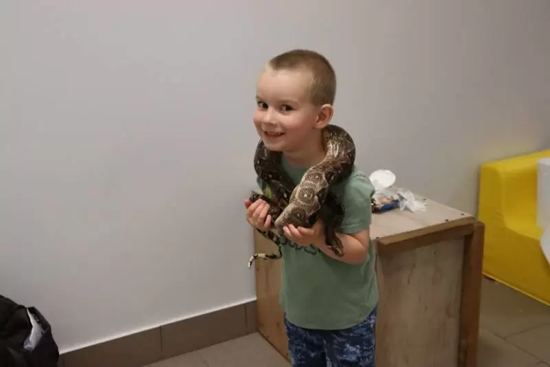 Pandemia Covid-19 nie pozwoliła na realizację wyjazdów, w zamian zaproponowano dzieciom udział w warsztatach przyrodniczych, które odbyły się 7 czerwca br. Przedszkolaków tego dnia odwiedziły gady oraz ssaki. Dzieci chętnie wysłuchały pogadanki o zachowaniach zwierząt i ich potrzebach środowiskowych. Były niezwykle zainteresowane opowiadanymi ciekawostkami – dowiedziały się m.in. dlaczego królik ma duże uszy i czy jeż nosi jabłka na kolcach.